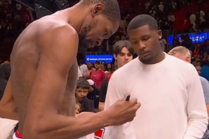 赛后,杜兰特和辛辛那提猛虎队外接手Tee Higgins交换球衣。