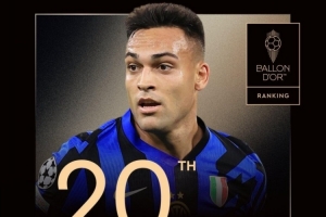 今年劳塔罗的金球奖排名与2023年一致,同为第20。2021年首次获金球奖提名时,劳塔罗排在第21位。四次提名中,排名最高的为2024年的第7位。
