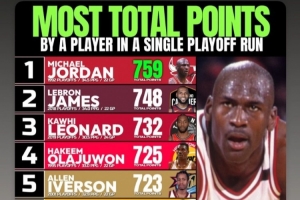 1、乔丹 1992年季后赛共得759分 场均34.5分(22场)