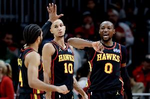 “到了季后赛,半场阵地战的攻坚能力至关重要。斯奈德是一位非常优秀的教练。杰伦·约翰逊这是第一次以核心身份打季后赛,在季后赛可能会交一些学费。但是让我们拭目以待。他们年轻、有运动天赋、充满活力,士气正盛,也有赢球的信念,阵中还有老将坐镇,有能力制造一些惊喜。”