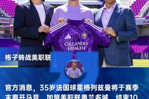 体育资讯03月24日讯 官方消息,35岁法国球星格列兹曼将于赛季末离开马竞,加盟美职联奥兰多城,结束10年马竞生涯。
