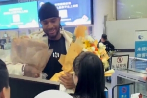 11月4日深夜,山东高速男篮大外援克里斯回到济南,在济南遥墙机场受到俱乐部和球迷热情欢迎。