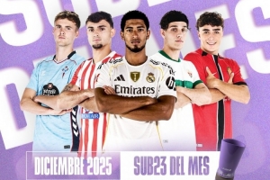 体育资讯12月24日讯 西甲官方公布了12月最佳U23球员候选名单,贝林厄姆领衔。