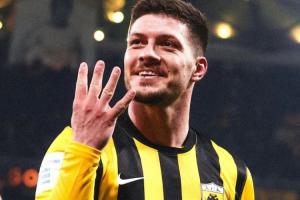 体育资讯01月20日讯 希腊超级联赛第17轮,雅典AEK4-0大胜帕纳辛奈科斯,赢得雅典德比。约维奇此役首发出战84分钟,在第15到78分钟连进四球,上演大四喜。