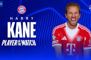 体育资讯1月22日讯 欧冠联赛阶段第7轮,拜仁2-0战胜圣吉罗斯,赛后凯恩被评为全场最佳球员。