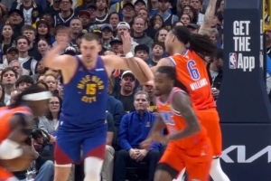 GIF-约基奇和杰林·威廉姆斯在场上对抗拉满 甚至开始转圈圈
