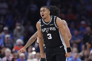 马刺球员凯尔登·约翰逊上半场表现出色,他替补登场首节3中3帮助球队建立领先,第二节在球队得分不力的情况下单节拿到7分没有让分差继续拉大。