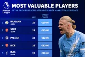 最新英超身价前十:哈兰德2亿 伊萨克降至1.2亿 维尔茨降至1.1亿