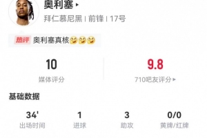 下一篇: 半程已取得大号两双!奥利塞本赛季各项赛事已15球+16助攻