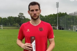 体育资讯6月19日讯 日前,上海嘉定汇龙前锋阿什利-科菲领取了中甲第11轮最佳球员奖杯。