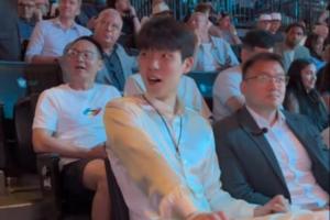杨瀚森在选秀大会现场坐在看台上,据@程博Bo 的视频显示,杨瀚森(此时他并未穿西装)应该是提前知道了自己被选中,从嘴型判断他说的疑似是:“16啊,牛逼。”