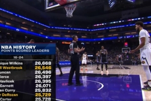 他的总得分来到25729分,超越卡特升至NBA历史第23位。