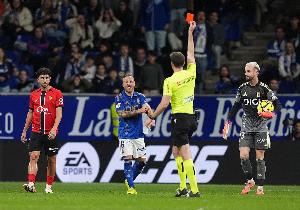 体育资讯12月06日讯 今天凌晨结束的西甲第15轮,皇家奥维耶多主场0-0战平马洛卡,比赛最后时刻40岁老将卡索拉因铲球动作过大吃到红牌。